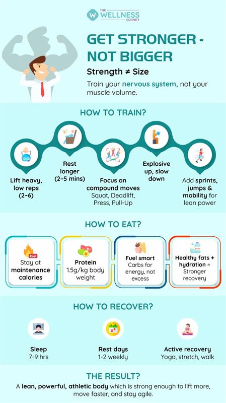 Getting stronger doesn’t mean you have to get bigger. By training with low reps, heavy weights, and longer rest, focusing on compound lifts, and controlling your nutrition and recovery, you can build impressive strength while keeping a lean, athletic body.